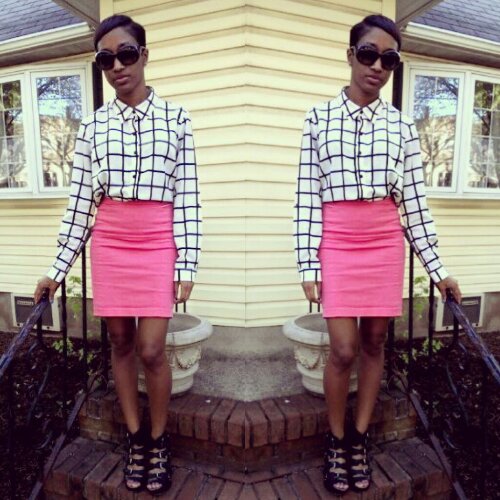 With today being so gorgeous out, I knew I had to wear bright colors. It was an absolute necessity. After close to a year of being hidden away, I felt it was time to break out my coral pencil skirt. I was not sure of which top to wear then I spotted my monochrome grid blouse. Monochrome and bright colors is always a great combination. It feels easy and effortless. I completed the look with my Sam Edelman wedges and Dolce & Gabanna round sunnies. I am so happy that it is finally starting to feel like spring. Better late than never!