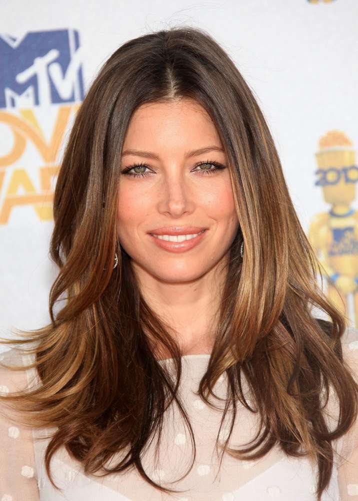 If you have a warm, olive skin tone with lots of highlights, You might want to keep the warm tones, but enrich the color with mahogany brown and create more depth by pulling through a few lighter, coppery pieces. Fresh-faced Jessica Biel’s olive skin tone goes perfectly with this color trend.
