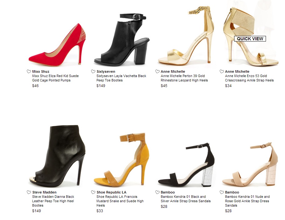 Am I wrong though? Never have I seen so many open toe shoes still for sale in the stores and online boutiques. A perfect example is the screenshot of Lulu’s website below. Seven out of the eight heels pictured are open toe.