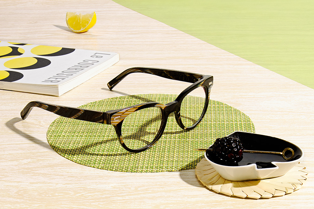 Creating this new collection did not come easy. Designing and constructing the patterns required a technique that took over a year to perfect, and each pair is distinguished with a unique contrast detail created by melding sheets of woodwork-inspired acetate and tortoise acetate together. No two pairs are alike.