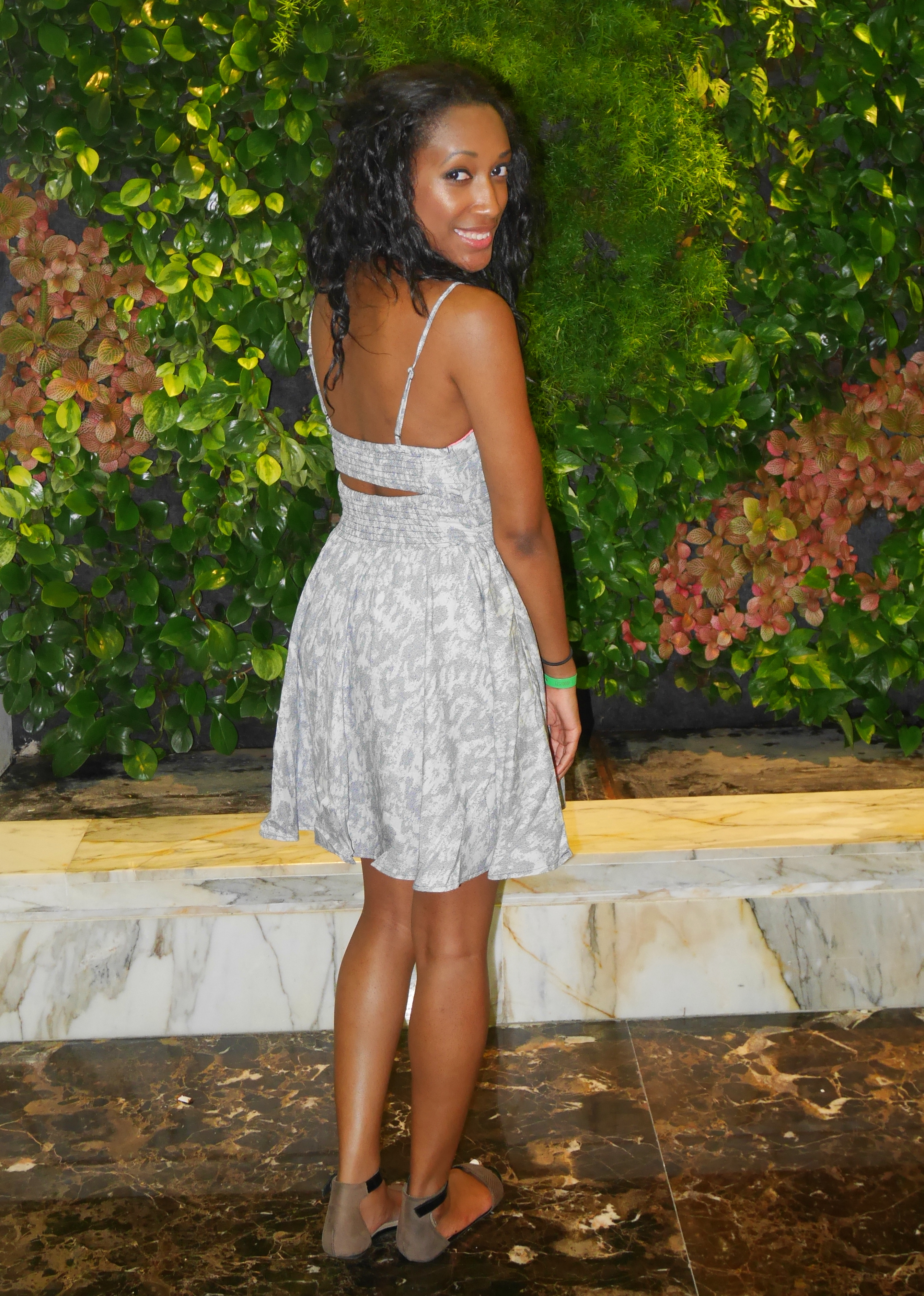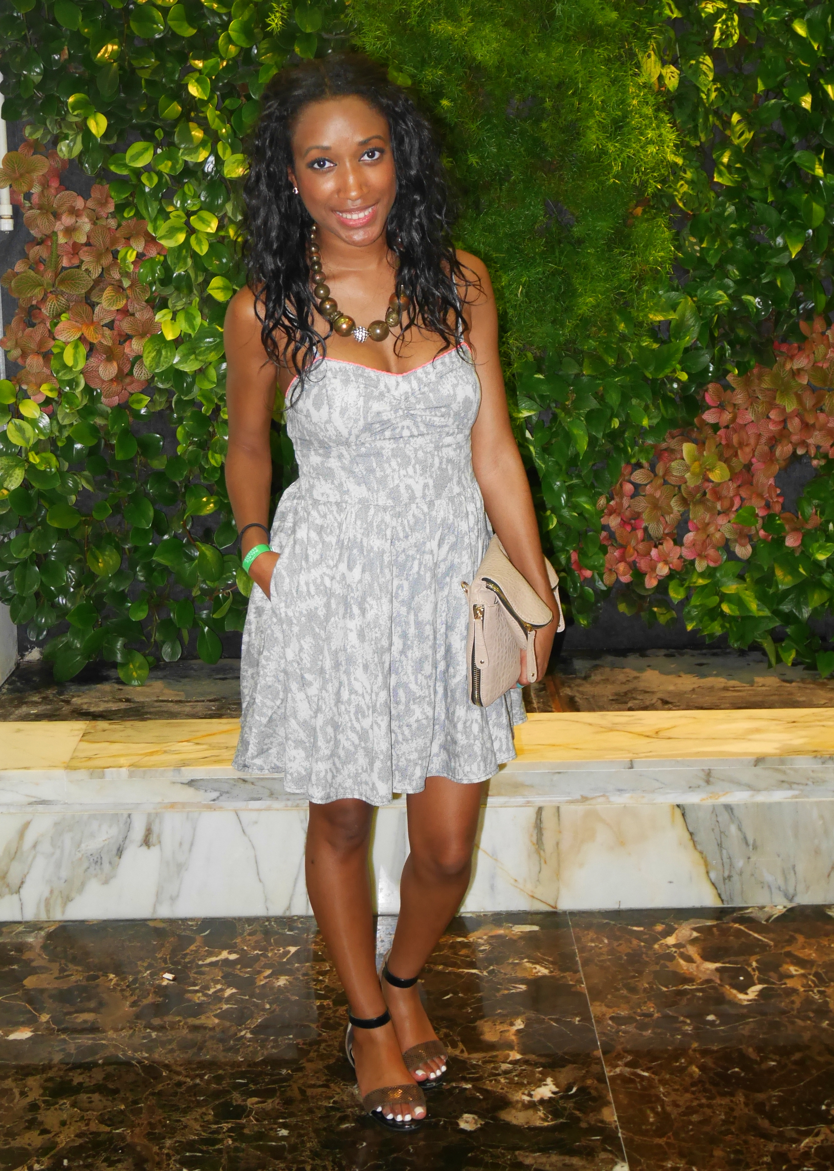 After the beach, we went back to the room to relax for a bit and get ready for dinner. For dinner, I wore a Bethany Mota fit and flare chambray dress courtesy of Aeropostale. I am sure this will not be the only time I will be wearing this cute item this summer! I accessorized with baubles, a nude clutch, and flat sandals.