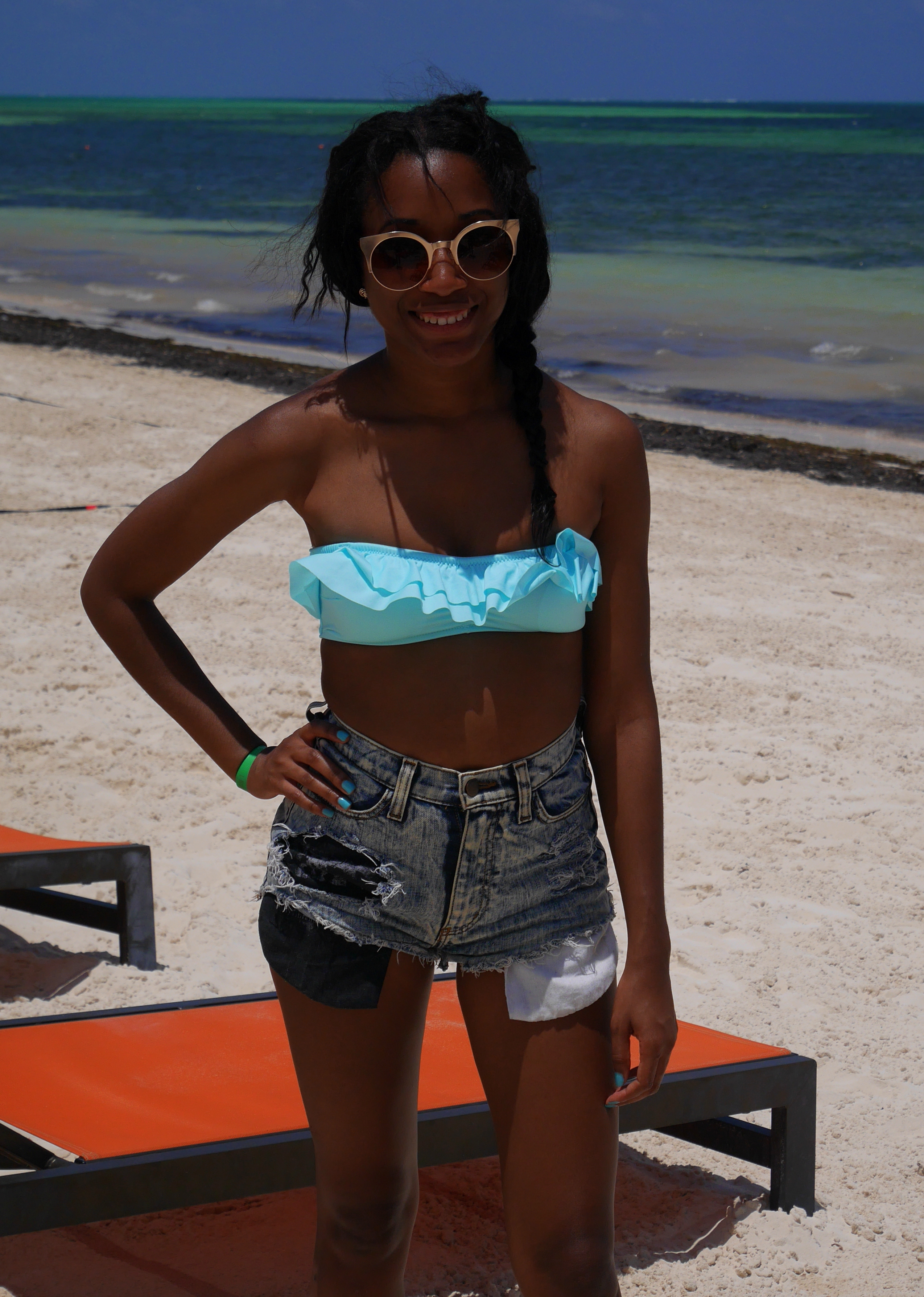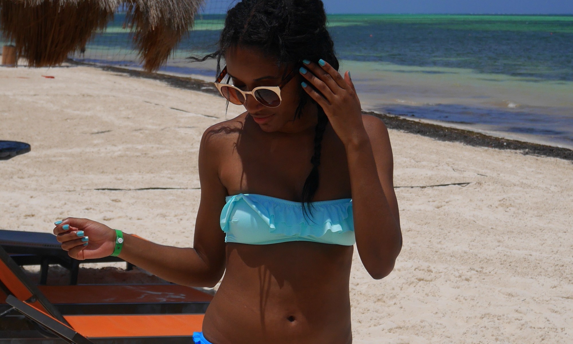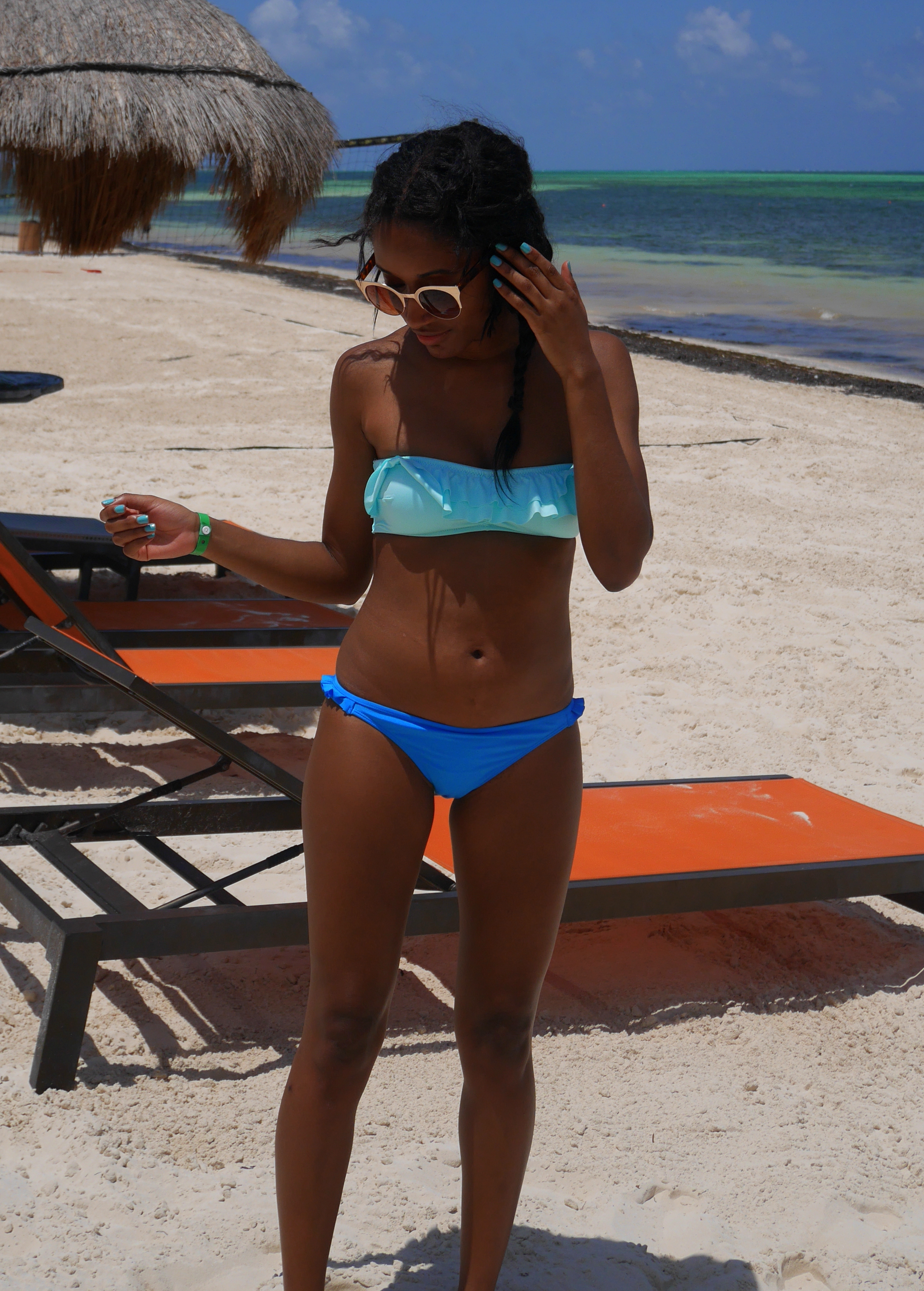 While I was not in the states for Memorial Day, I made sure to celebrate while here in Cancún! On the beach I wore a mixed and matched ruffle bandeau bikini and high waisted denim shorts. It’s really fun to remix bikinis by pairing fun colors.