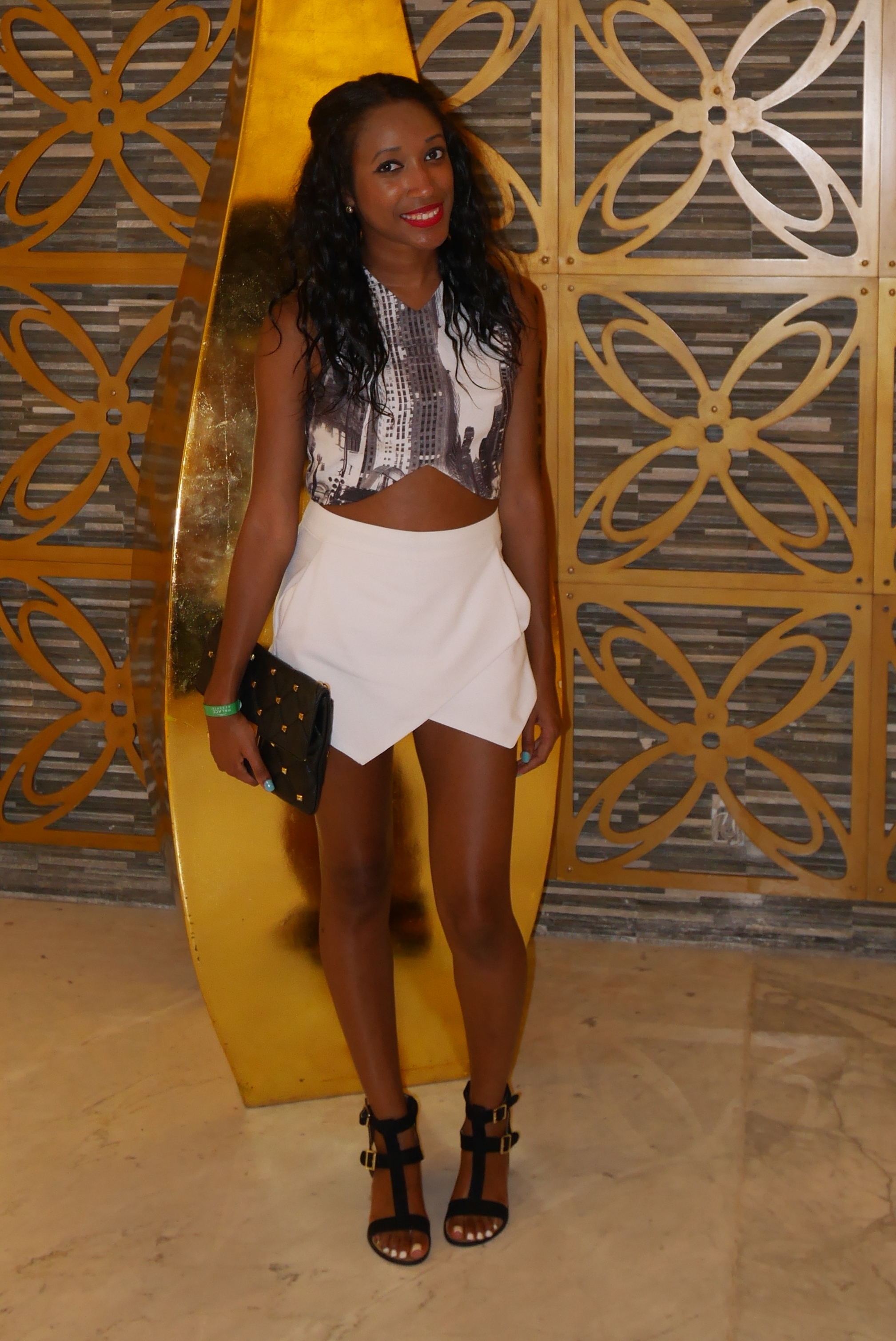 At night, we went out to a super fun club in the hotel zone of Cancún called Mandala. I have been dying to hop on the white trend so I wore a New York City print crop top with an asymmetrical white skort.