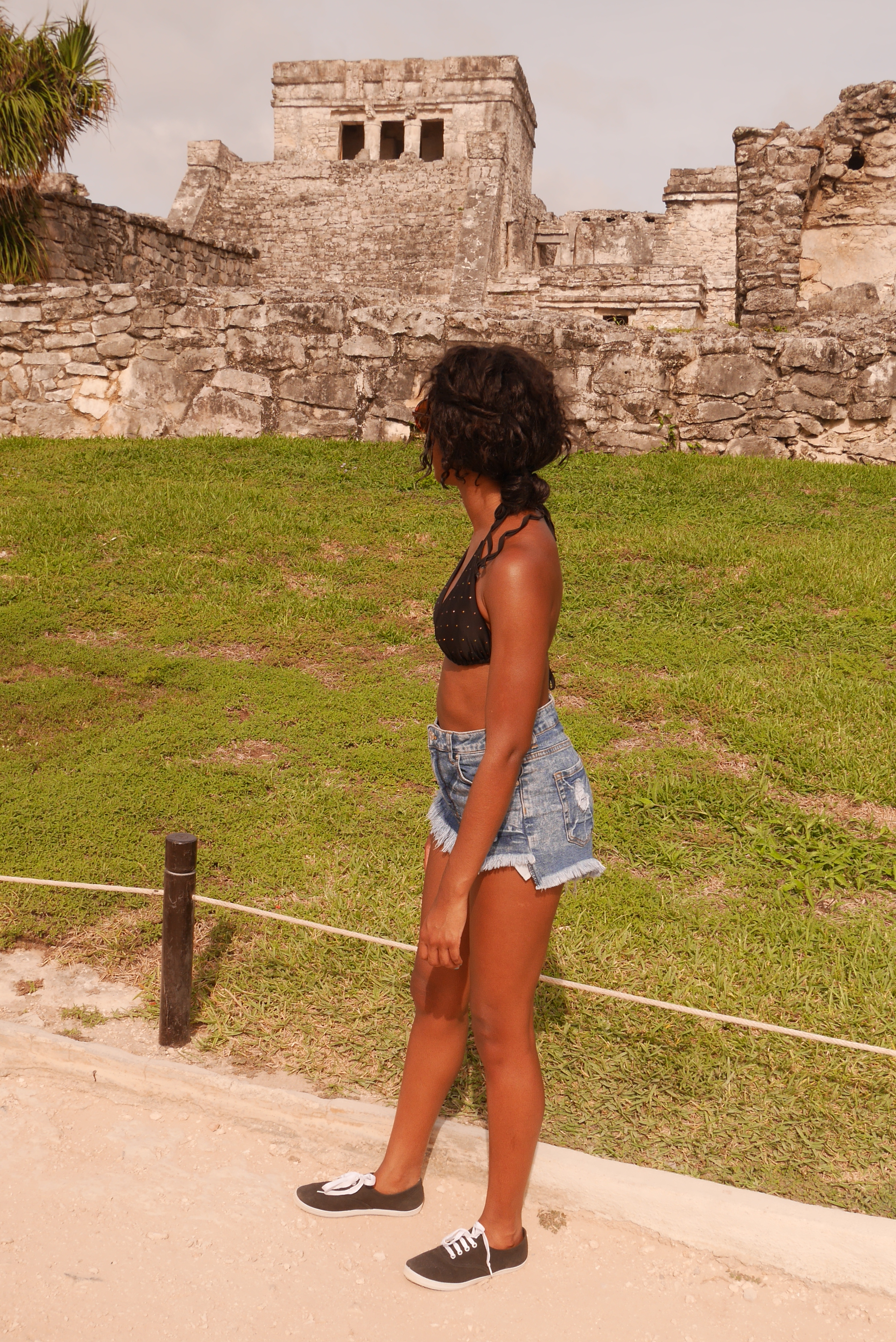 Day 6 was probably the most fun days of the trip. We started of the day going swimming in one of the beautiful cenotes (natural sinkhole) near Tulum. It was so relaxing and I have never seen fresh water that was so gorgeous. After a refreshing dip, we headed to Tulum to see the Mayan ruins. It was super hot, but it was such a majestic thing to see! I wore high waisted shorts and black skippies.