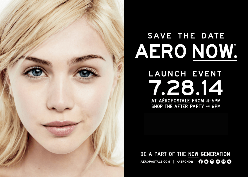 Hey fashionistas! I am so excited to announce that I will be hosting the Aero Now Launch Event at Manhattan Mall on Monday, July 28th from 4 to 6 p.m. Here is your chance to see the awesome line that Aeropostale is launching for Fall 2014 with the bonus of meeting ME! Win-win!
