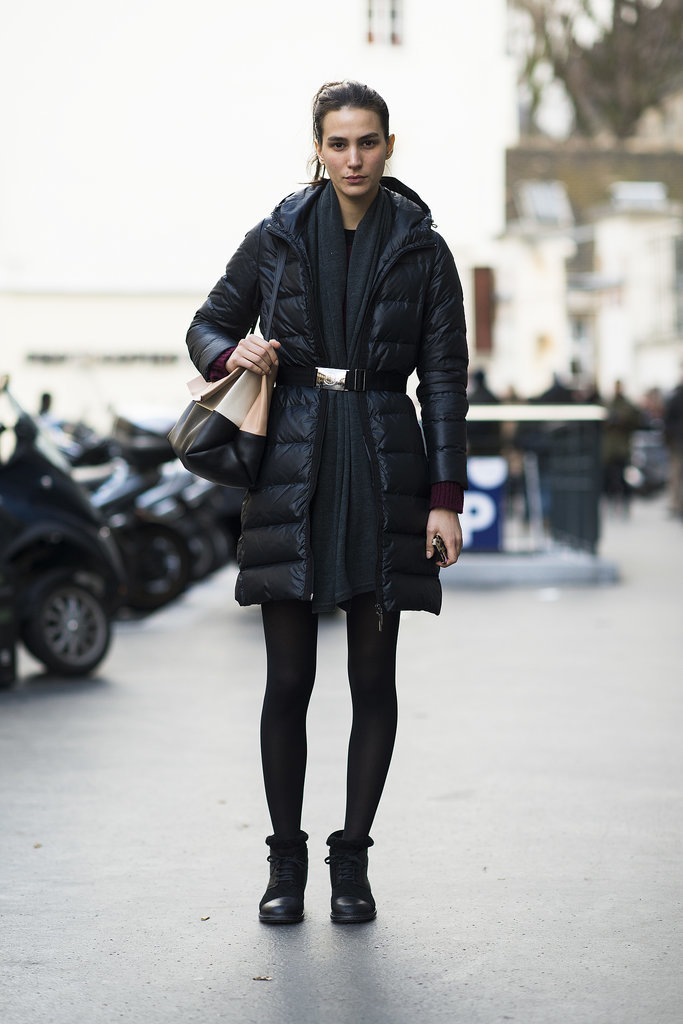 A puffer jacket is essential on cold days. Wear it with a cozy infinity scarf, over the knees boots, fur earmuffs, and texting gloves to stay completely toasty. Be sure to also wear a sweater to ensure extra warmth!