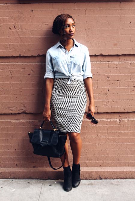 In early fall the best way to transition is by making small tweaks. Put the brights away and darken up your color scheme. Swap your sandals out for booties. When the weather permits make the shift from light to heavier fabrics (wool, leather, suede, etc.). Change your prints from florals to plaids. It is the little variations that give you a fall look. You don’t always need to be in a chunky knit sweater for your outfit to scream fall.