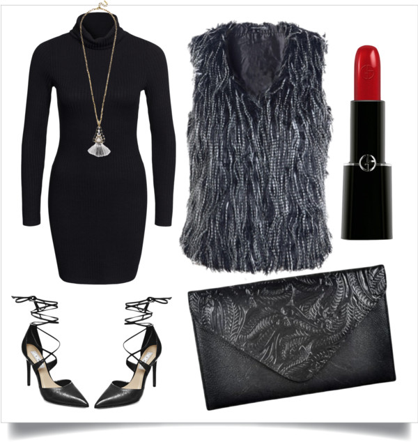 This look is perfect for a night out with the hubby or boyfriend. It is also great for dinner with the girls. The turtleneck dress will compliment the vest perfectly. It is effortlessly fabulous!