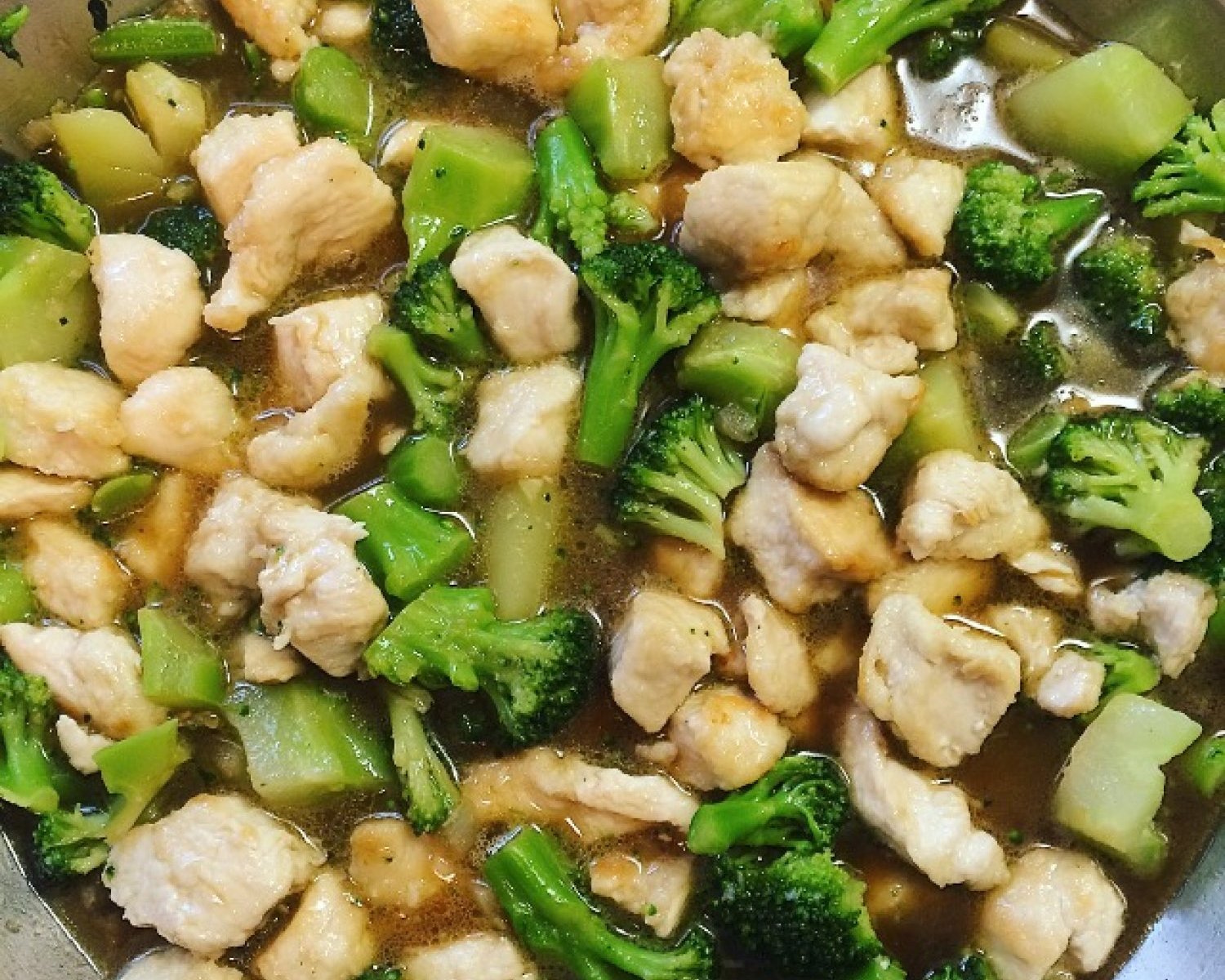 - Add the chicken and stir making sure everything is mixed together and heated through