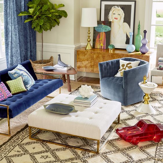 For a unique coffee table, go for a fabric large ottoman. Ottomans are not just for sitting on but can be used as coffee tables. Using an upholstered ottoman as a coffee table can add a soft touch to your space.