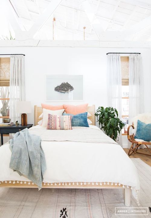 Incorporating lighter pastel colors can open up a lot of possibilities. It’s an easy palette to work with and your space will automatically feel light and airy. Change out your heavy curtains for sheers or linen to allow for natural light.