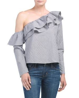 If you’re not ready to give up both shoulders or just want to change it up a bit. Try a one shoulder off-the-shoulder top!