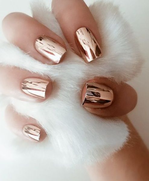 This look is screaming glam! It can be achieve using a metallic nail polish, but the best way to get this effect is by using actual chrome powder.