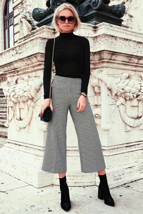 If you have yet to jump on the culotte train, you’re really missing out! Wear your favorite pair of culottes with a basic turtleneck for a classic and sophisticated look.