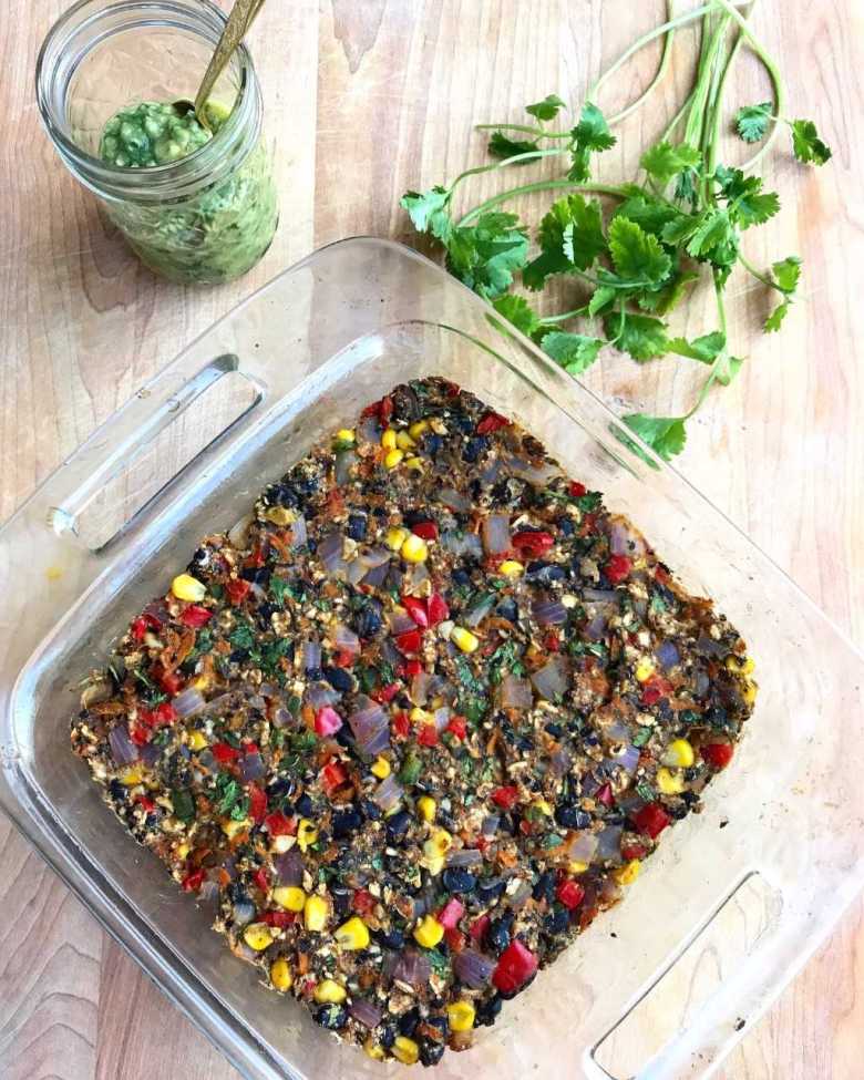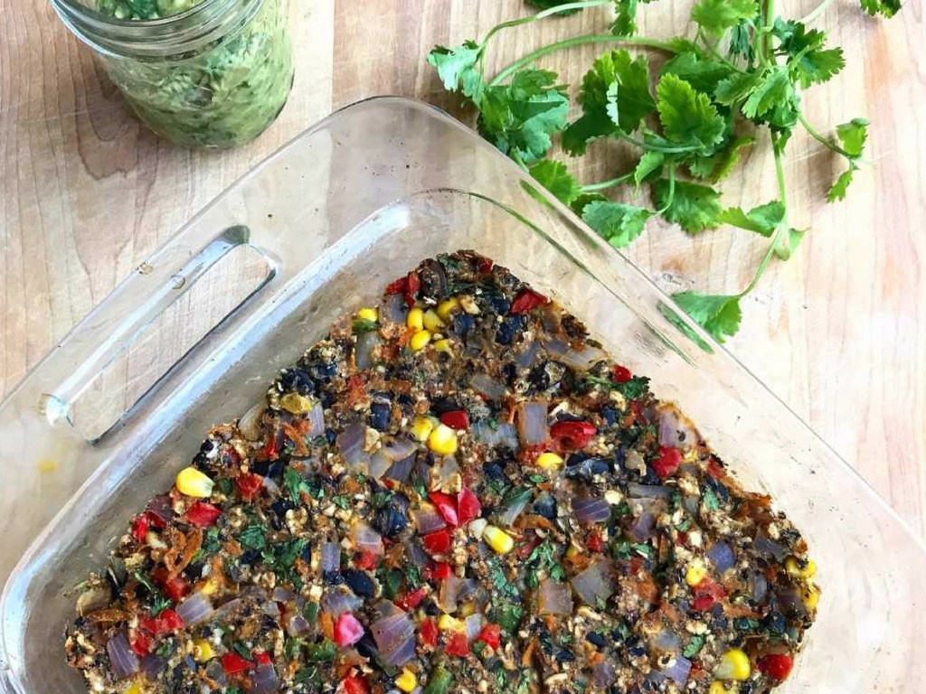 - Make the sauce by combining salsa verde, mashed avocado and cilantro in a medium bowl. Smooth over black bean loaf once ready to serve.