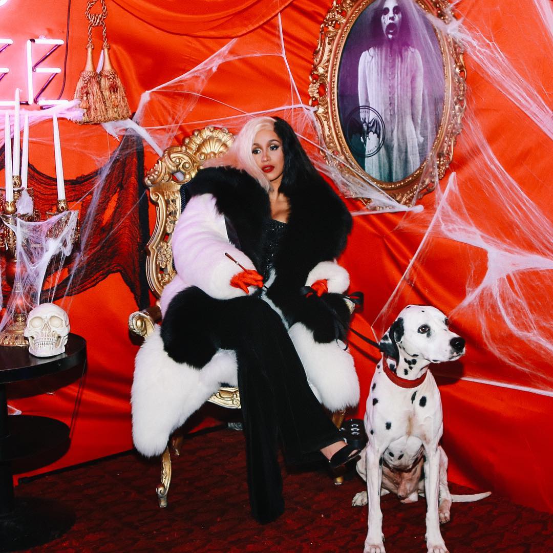 Cardi B as Cruella de Vil from "101 Dalmatians"