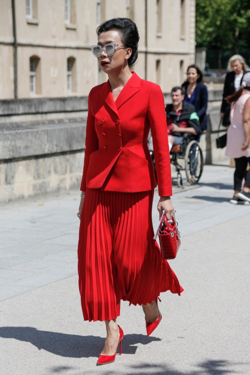 If you got into red last season, you’re in luck because the color is still trending this season. Go for an all red look if you’re feeling bold.