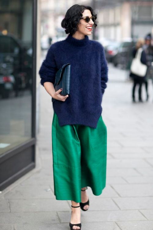 Your closet is probably busting at the seams with chunky knits. Break those out for the office. Pair with a skirt, culottes, or jeans on casual Friday. Chunky sweaters are a great transitional piece when the weather starts to turn.