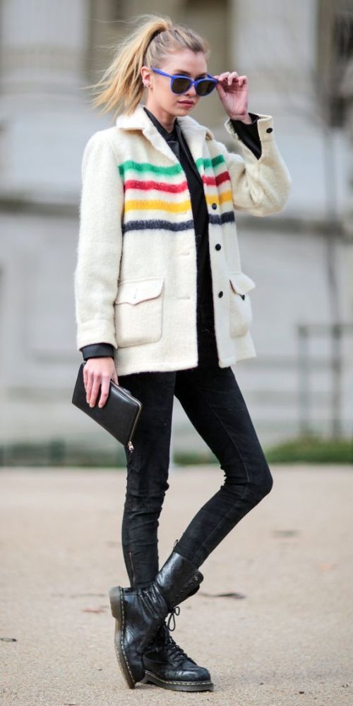 If there is anything that looks great with a pair of skinny jeans, it is a pair of combat boots. They add a cool edge that takes away that basic vibe that the cut can give off.