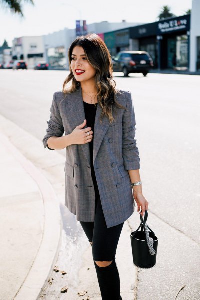 Balance the form fitting denim with an oversized blazer that is beyond trending. It is the perfect way to give favorite pair of skinnies a 2018 update.