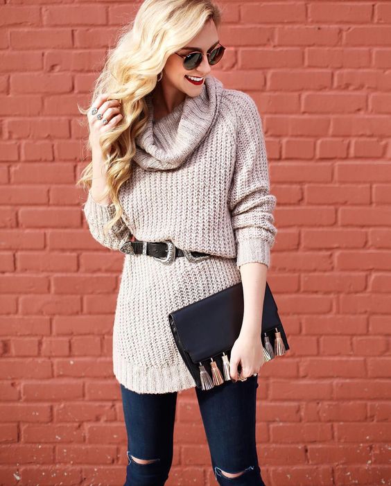 My one complaint about sweaters is that they can be a bit shapeless and unflattering at times. Take that lackluster sweater and give it a pop with a statement belt.