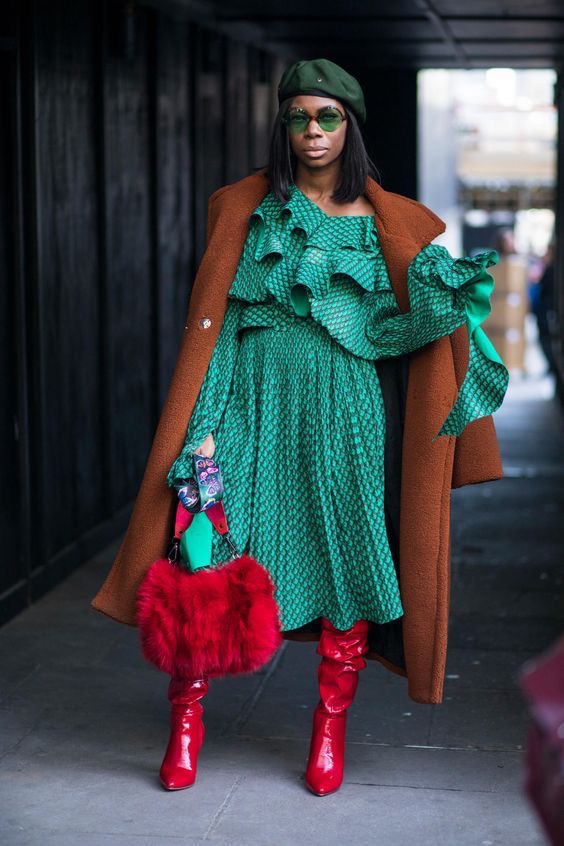 Offering a few examples simply because midi length is one of the most flattering ways to wear slouchy boots and for some the biggest fashion challenge. Something about the length balances out the shape of the slouchy boot.
