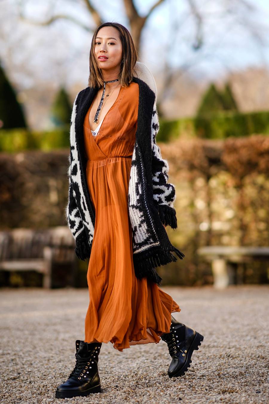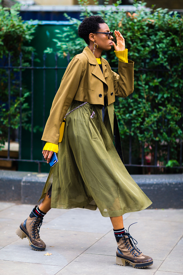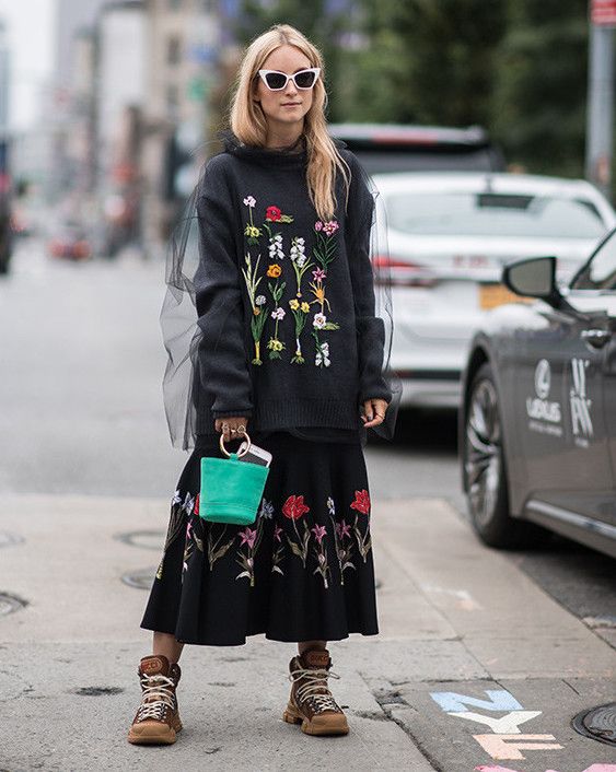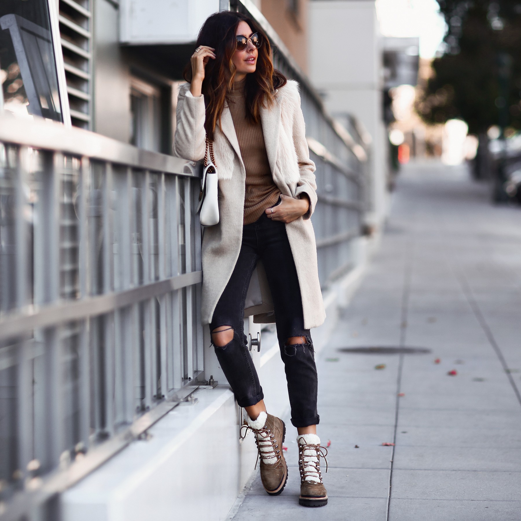 Leave it to the fashion gods to take a very practical item and to suggest we wear it in the most impractical way. Here’s my thoughts on the trend — take it with a grain of salt. I’d also suggest only investing in it if you have plans to occasional use the boots for their actual purpose. If you’re down to take the plunge here are some ways to wear the trend.