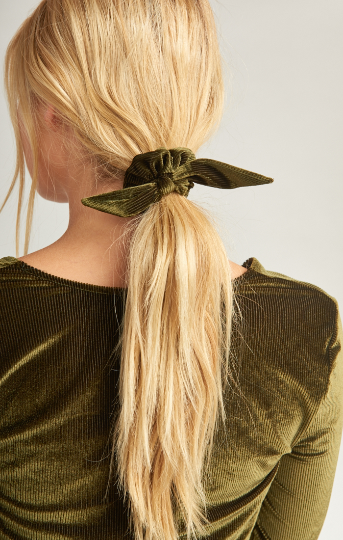 Give your regular hair tie a run for its money. While it’s not an everyday choice, a scrunchie is a valid option for taking your messy bun up a notch.