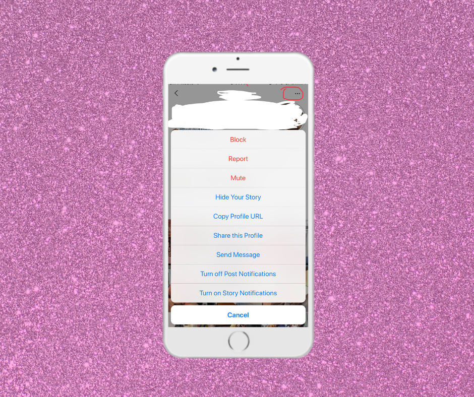 Okay, for keeping the peace reasons you cannot unfollow everyone. People do notice and it can cause unnecessary drama. In comes the mute option. Oh, you didn’t know about muting?! It’s the best thing to happen to personal relationships since caller ID. Hit those three dots at the right corner of someone’s page. Then press mute. It will give the option to mute posts, stories, or everything. The person will not know you’ve muted their posts.