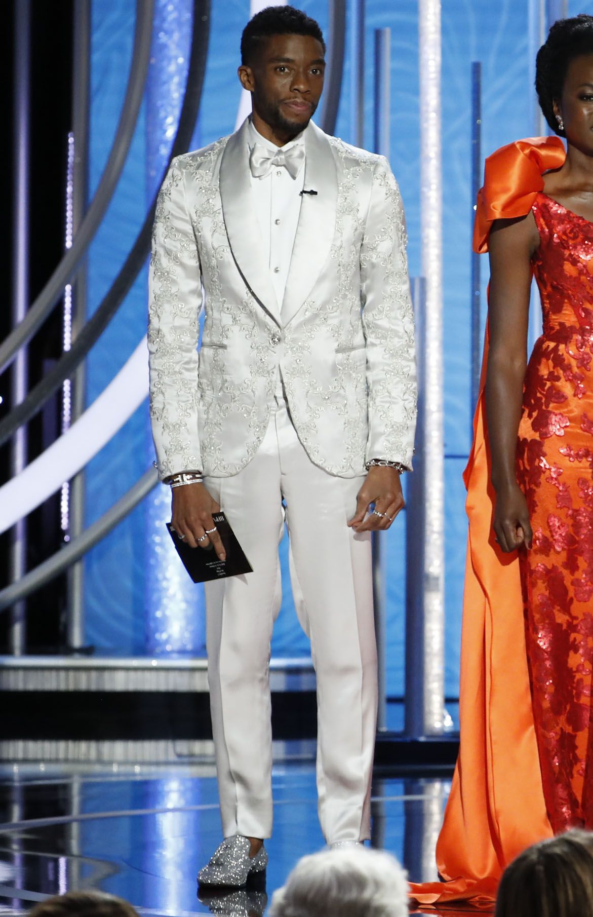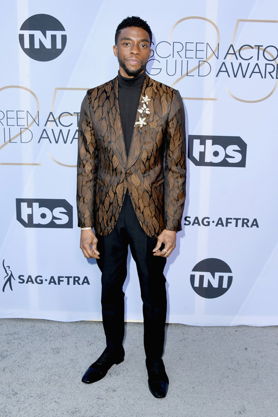 Most men who attend these award shows lean towards a black tuxedo. Occasionally they’ll get wild and opt for a color. Chadwick actually embraces the fashion in men’s fashion. I love it!