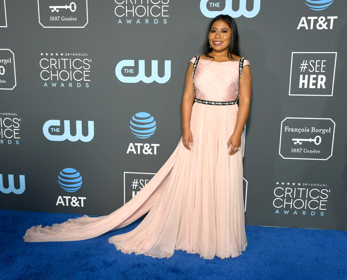 Roma was Yalitza’s film debut and she’s nominated for best actress! She is the first Indigenous woman to receive a Best Actress Oscar nomination. Her looks can best be described as pretty. Not major standouts, but definitely hitting the mark.