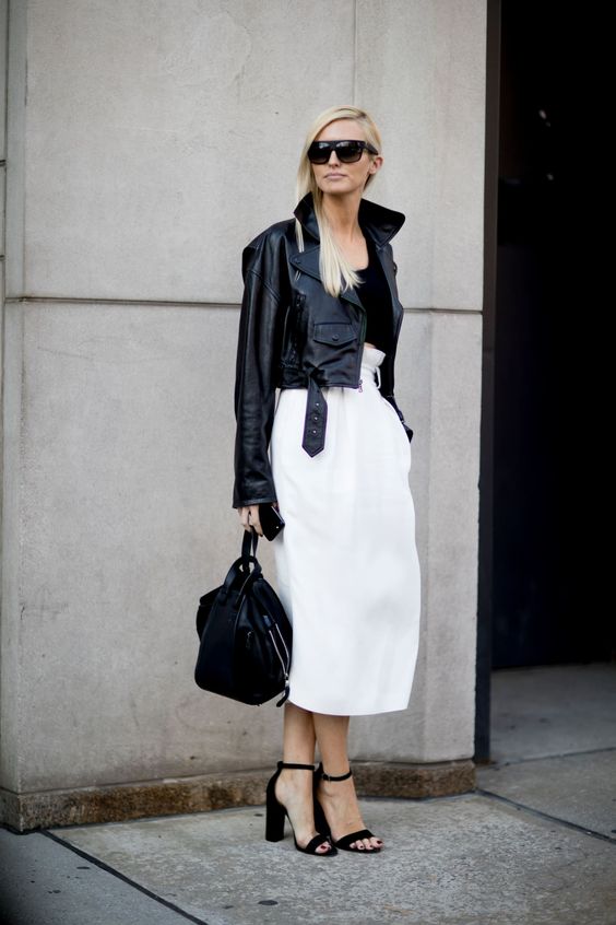 A perfect way to wear white is to spice it up with some leather. At first glance you might think that the two don’t pair well together. It’s actually an ideal juxtaposition.
