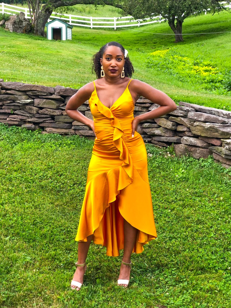 This was my first black tie wedding. I had been to galas in the past and just gone for midi length to save myself the stress of finding a gown that didn’t overwhelm my petite frame.