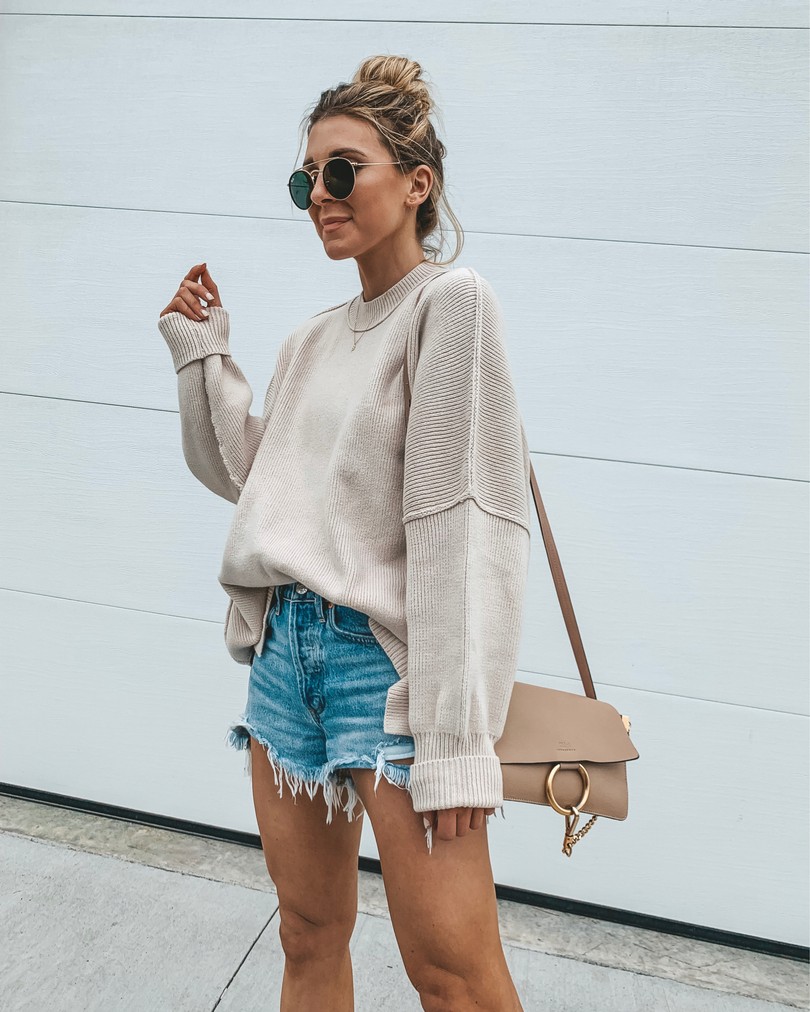 If you transition your closet from summer to fall, it make sense to put away most of your summer items. The one thing I would recommend not putting away just yet is denim shorts. You can pair denim shorts with a plethora of fall items from blazers to booties. It’s great way to rock fall style on days that might be a little warmer.