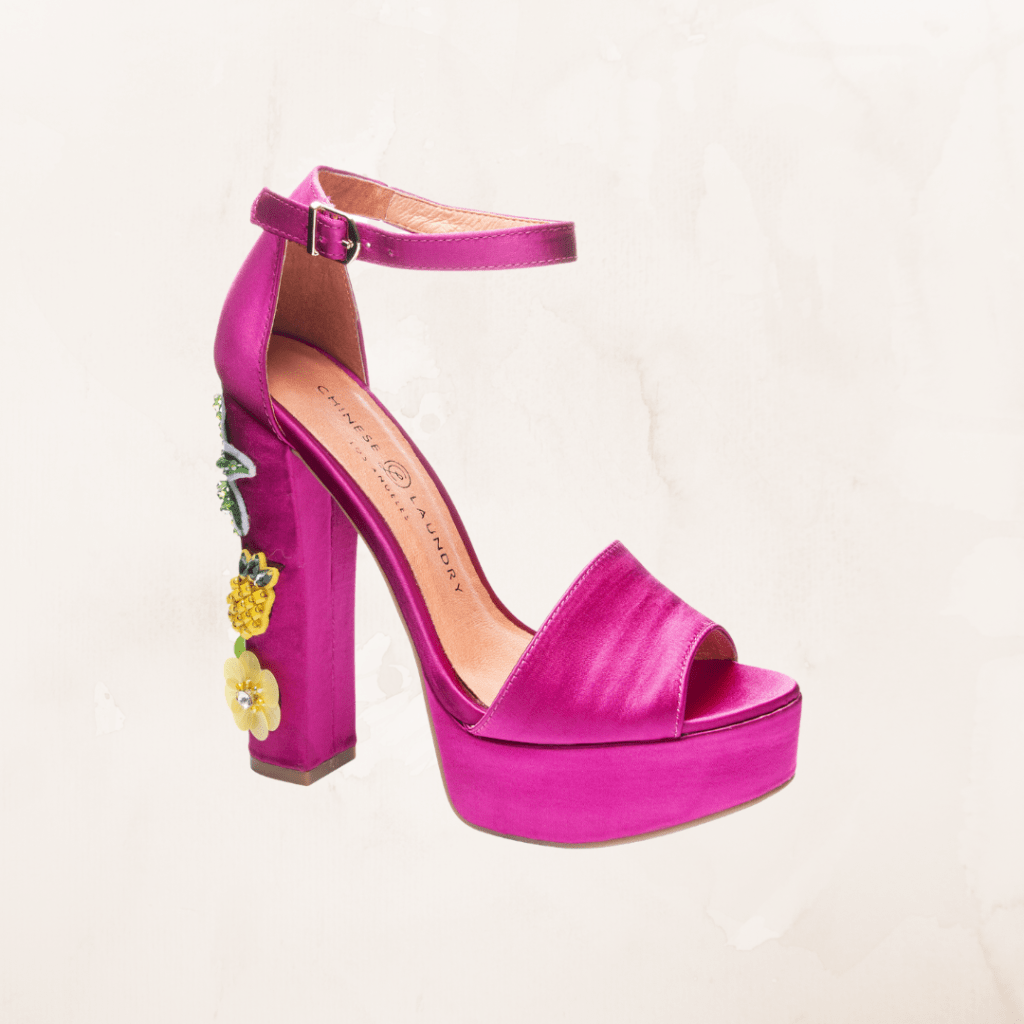 Neutral heels are necessary and valid, but after you’ve checked those boxes turn your attention to colors. Pastels are trending in a big way, as are bold primary colors. The season’s colors on my list are baby blue, pastel yellow, lavender, orange, hot pink, and lime green.
