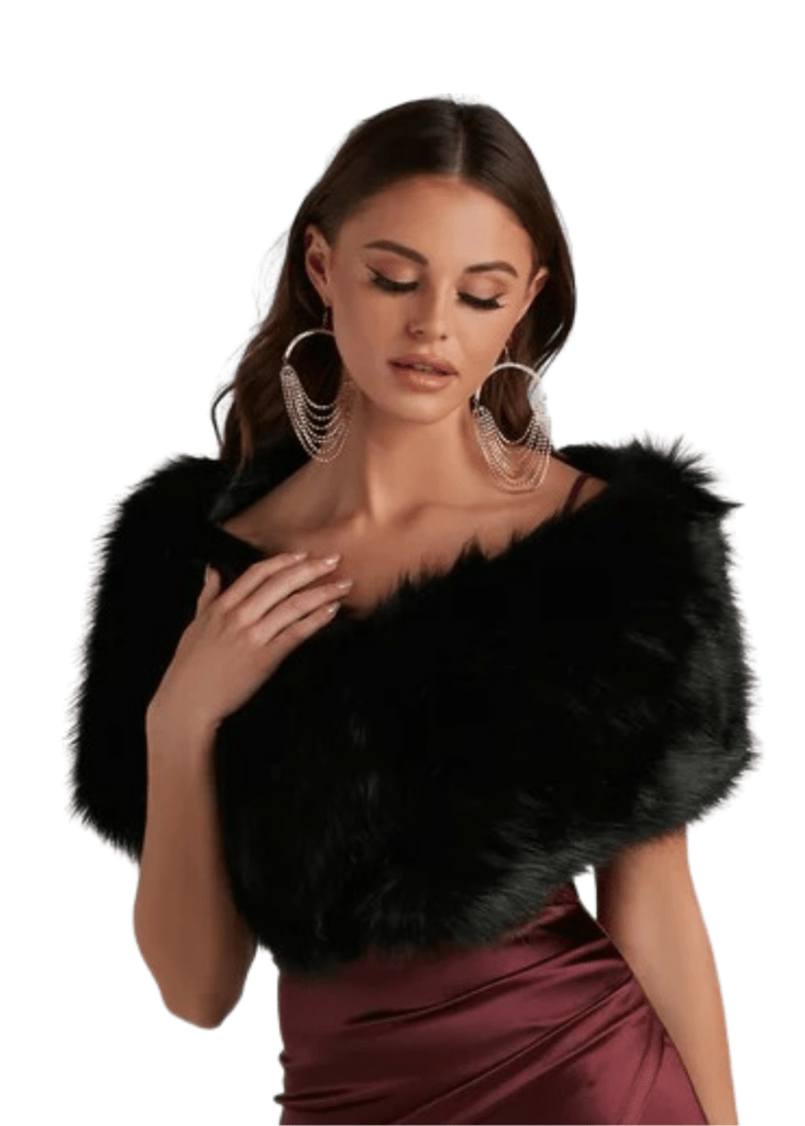 If you’ve been following me for a while, you know I believe that every look is completed with outerwear. Make sure you pair the right coat with your look. My recommendations are either a luxe longline or a cropped faux fur coat (depending on dress length). If you only care about being glam, frostbite/hypothermia be damned, try a stole.